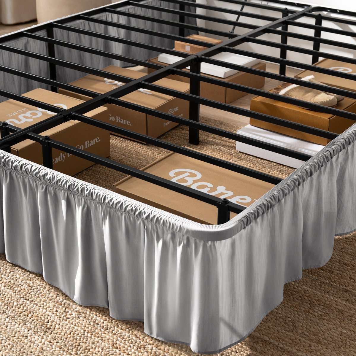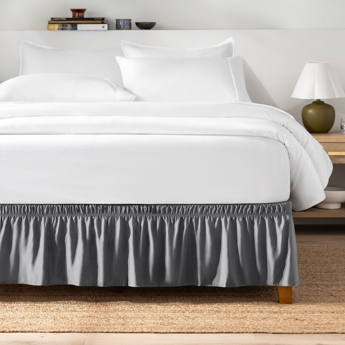 Our Adjustable Bed Skirt is designed for a clean, tailored look without the hassle of lifting your mattress. The wrap-around design with adjustable elastic straps makes installation quick and easy while ensuring a secure fit on most bed frames. With a generous 15” drop, this ruffled bed skirt effortlessly conceals box springs, bed frames, and under-bed storage, instantly giving your bedroom a more polished, clutter-free look.