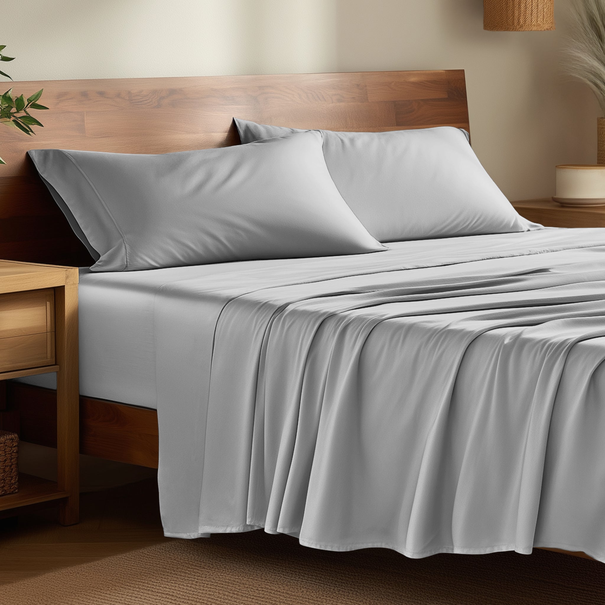 Stay cool and comfortable all night with our Bamboo Sheet Set. Known for its incredible softness and moisture-wicking properties, bamboo bedding is perfect for hot sleepers and a luxurious night's sleep.