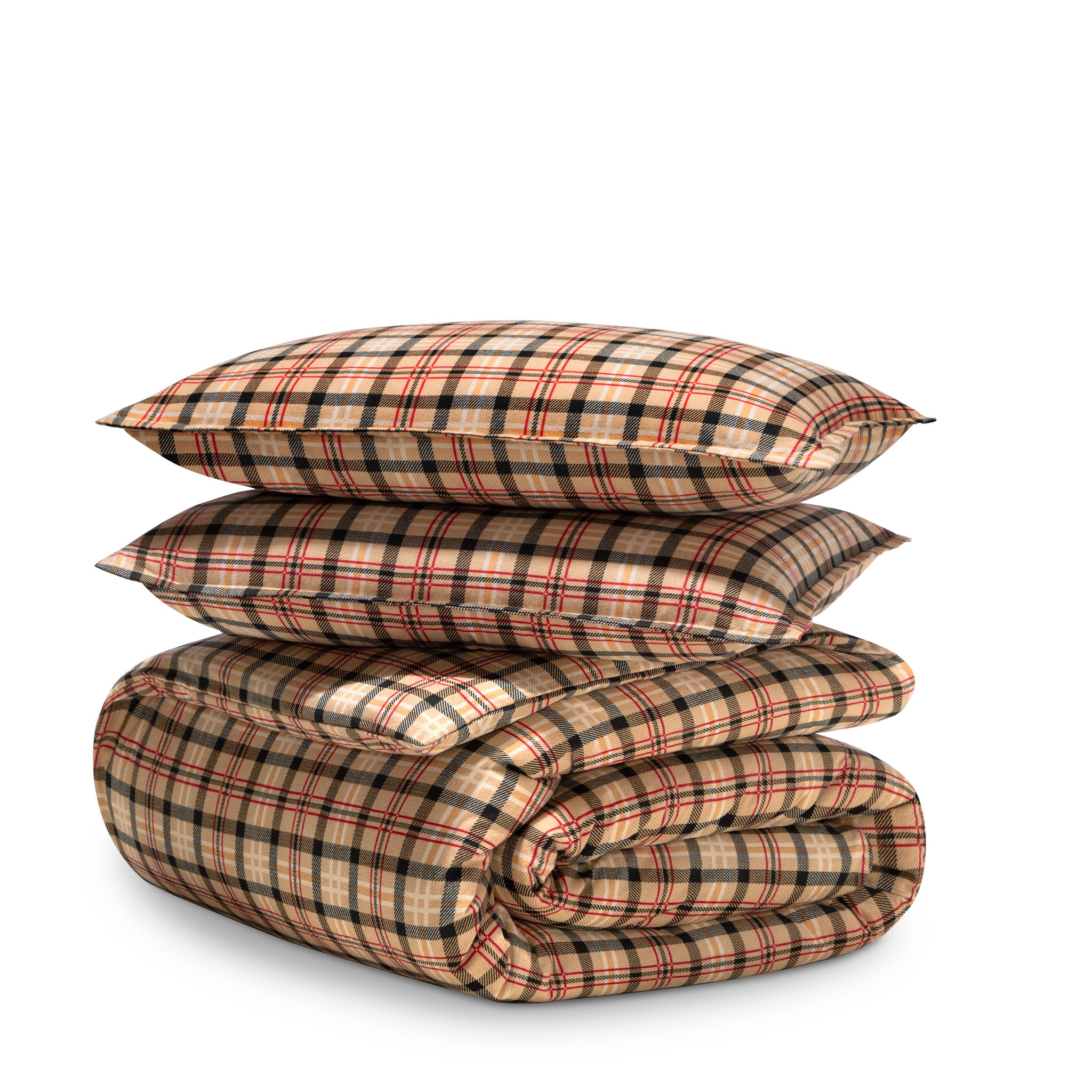 Two flannel pillowcases on a white background