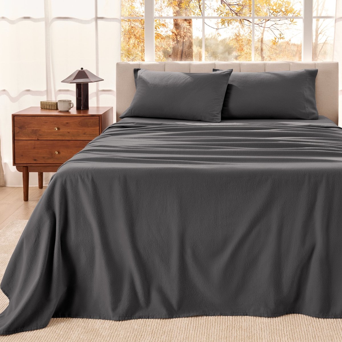 Stay warm and cozy with twice the insulating thickness. Our mid-weight flannel is double-brushed to create a fuzzy nap on both sides, trapping more warmth and giving it the ultra-soft feel you know and love.