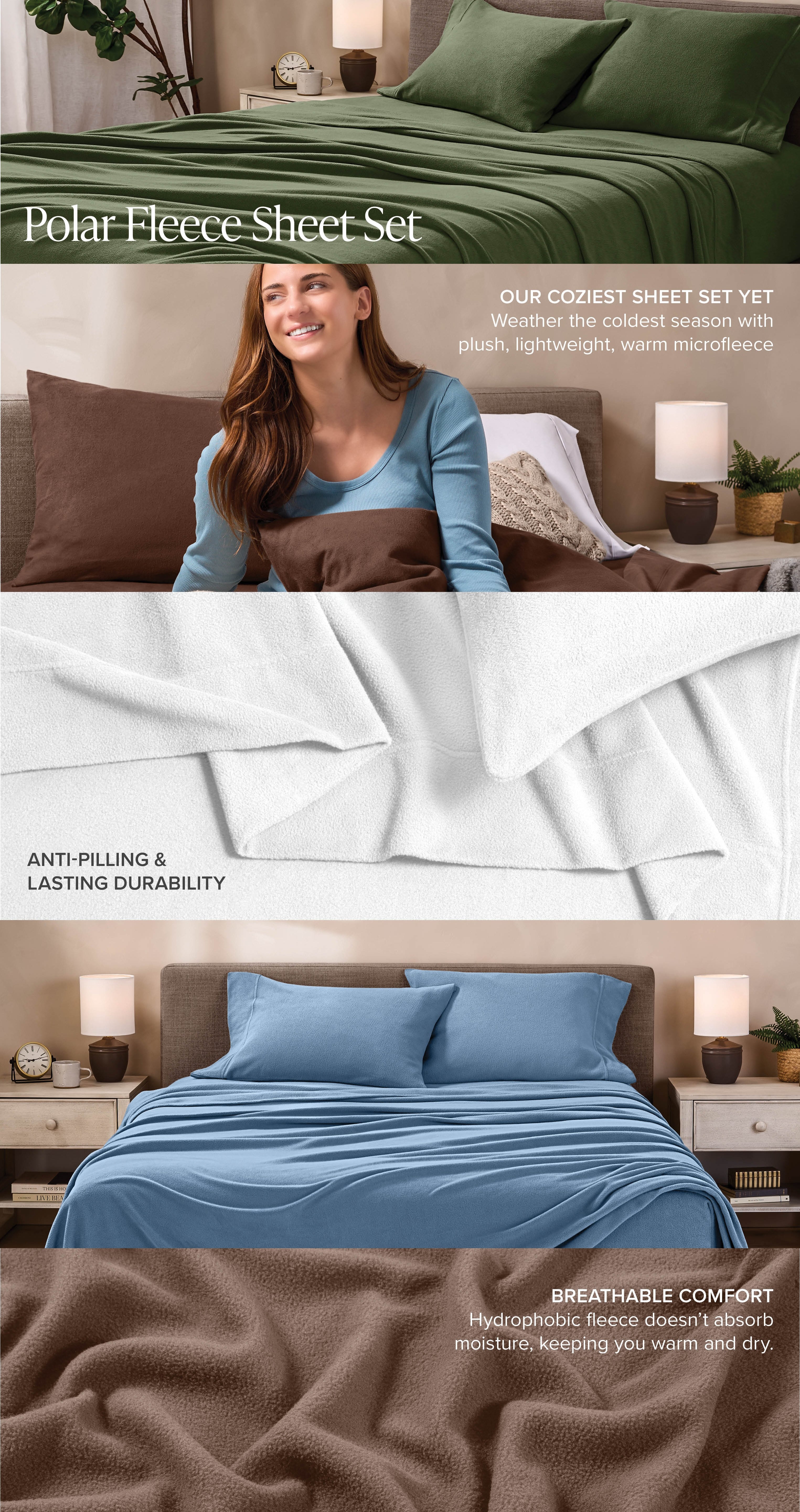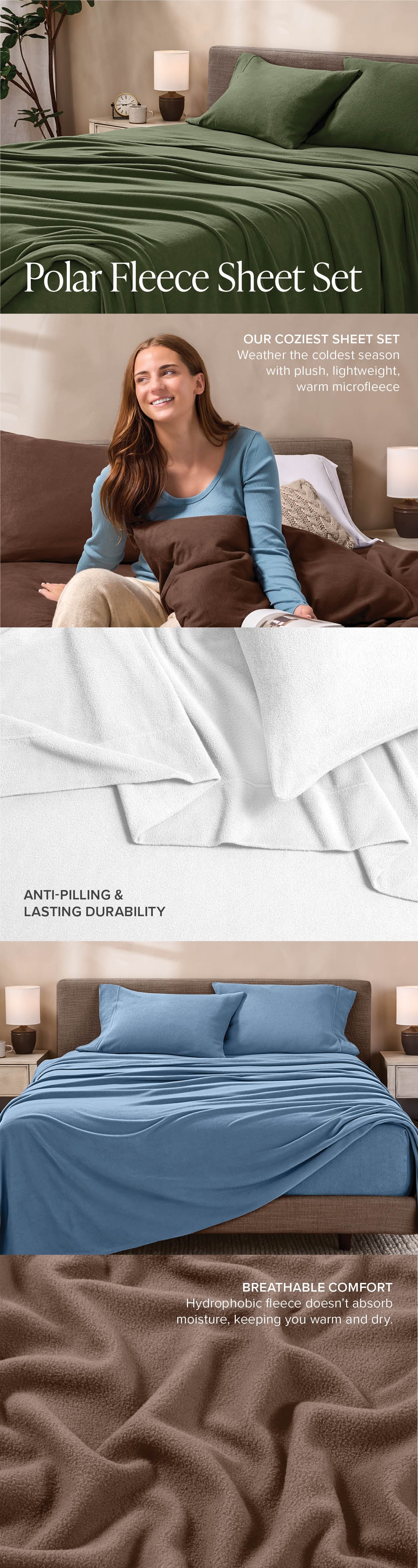 Weather the coldest seasons--or even chilly summer nights--with the soft, plush warmth of a polar fleece sheet set. Made from lightweight microfleece, it will keep you cozy without the bulky weight.