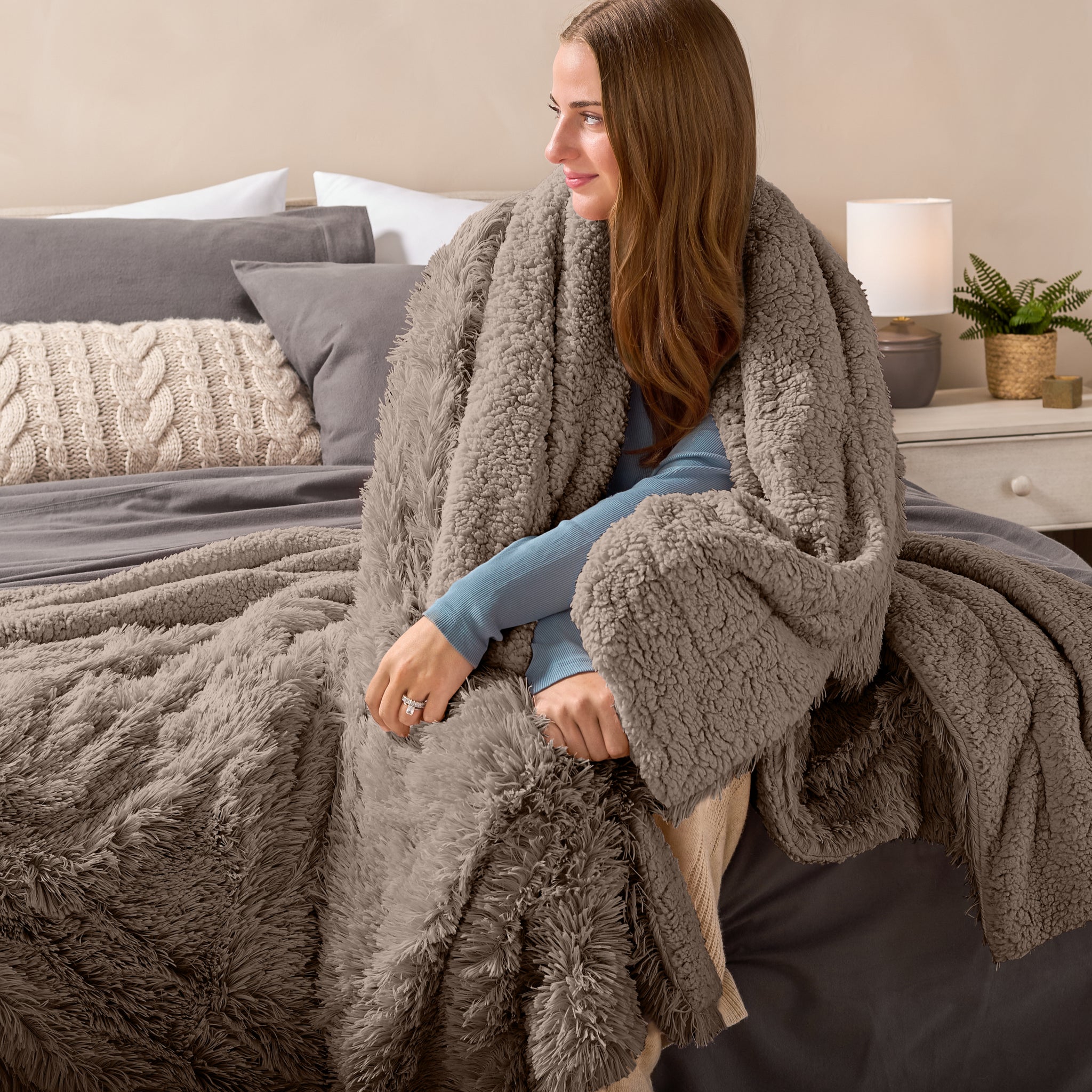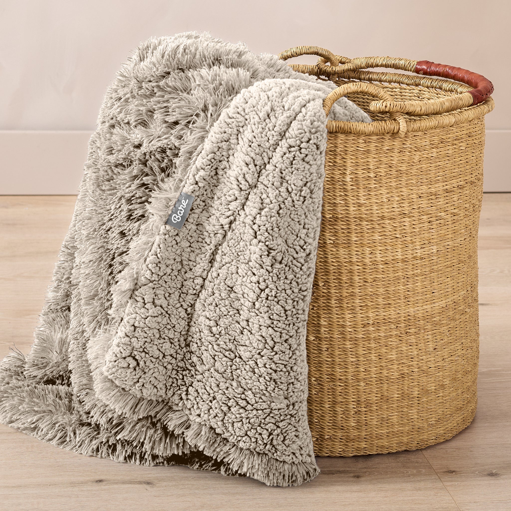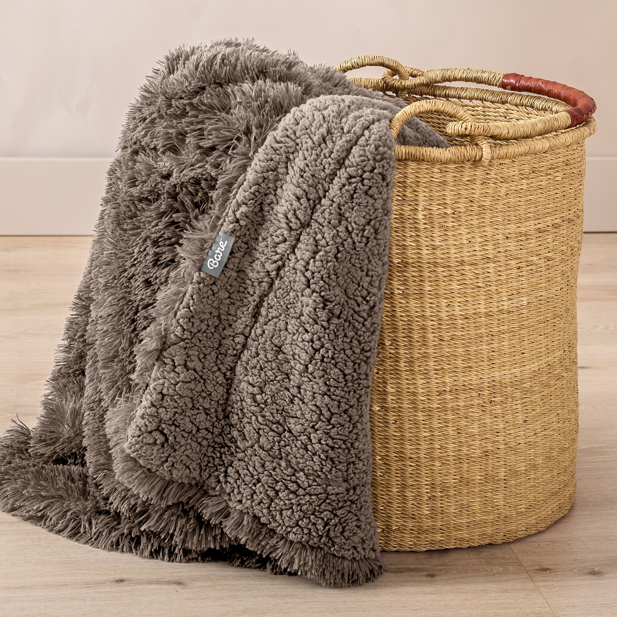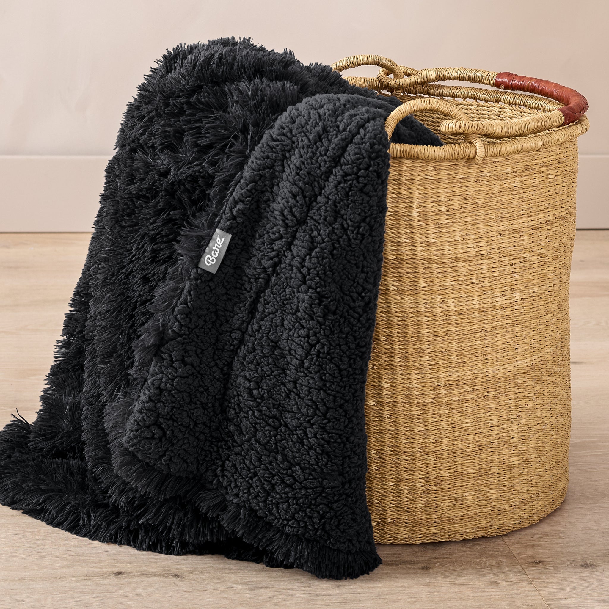 Add a layer of fun texture to your bed with our Shaggy Faux Fur Sherpa Blanket. This blanket is made from a plush, shaggy faux fur on one side and a soft sherpa on the other for an incredibly cozy and stylish feel.