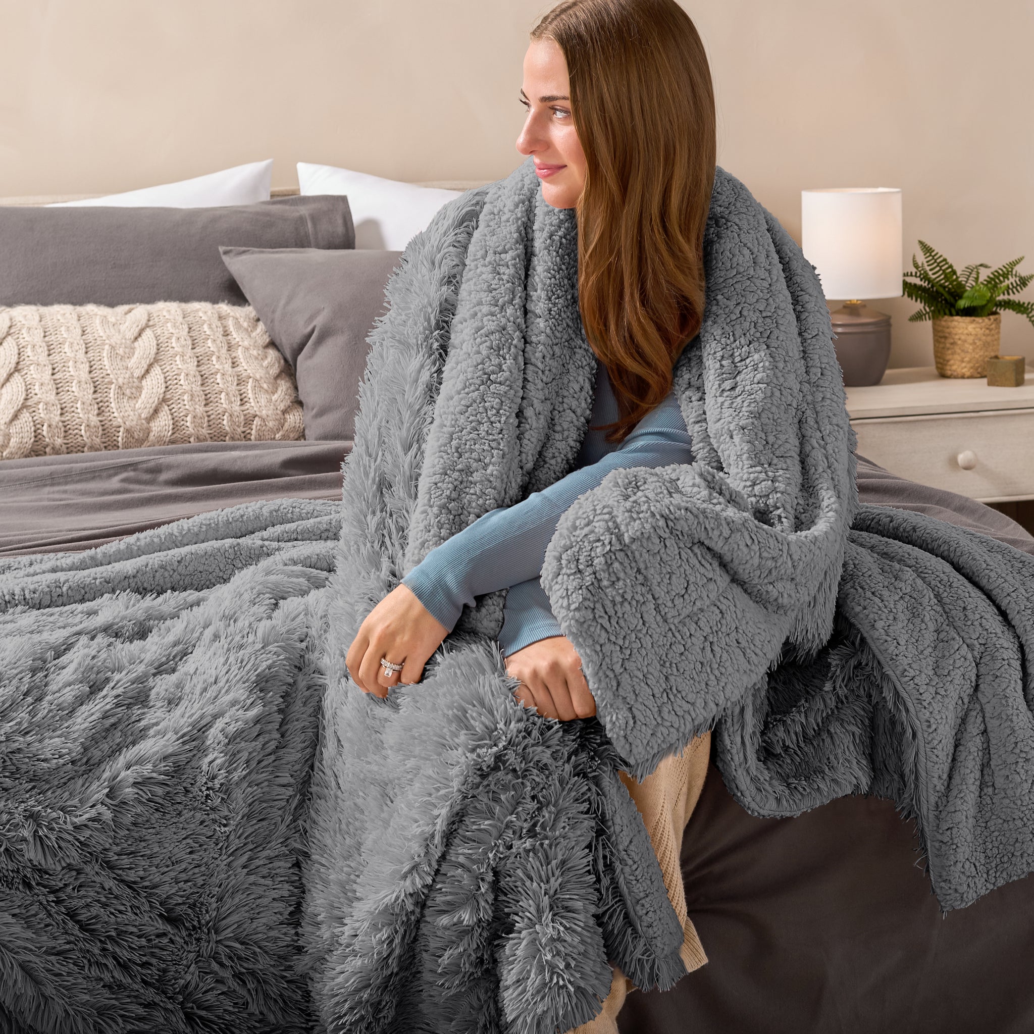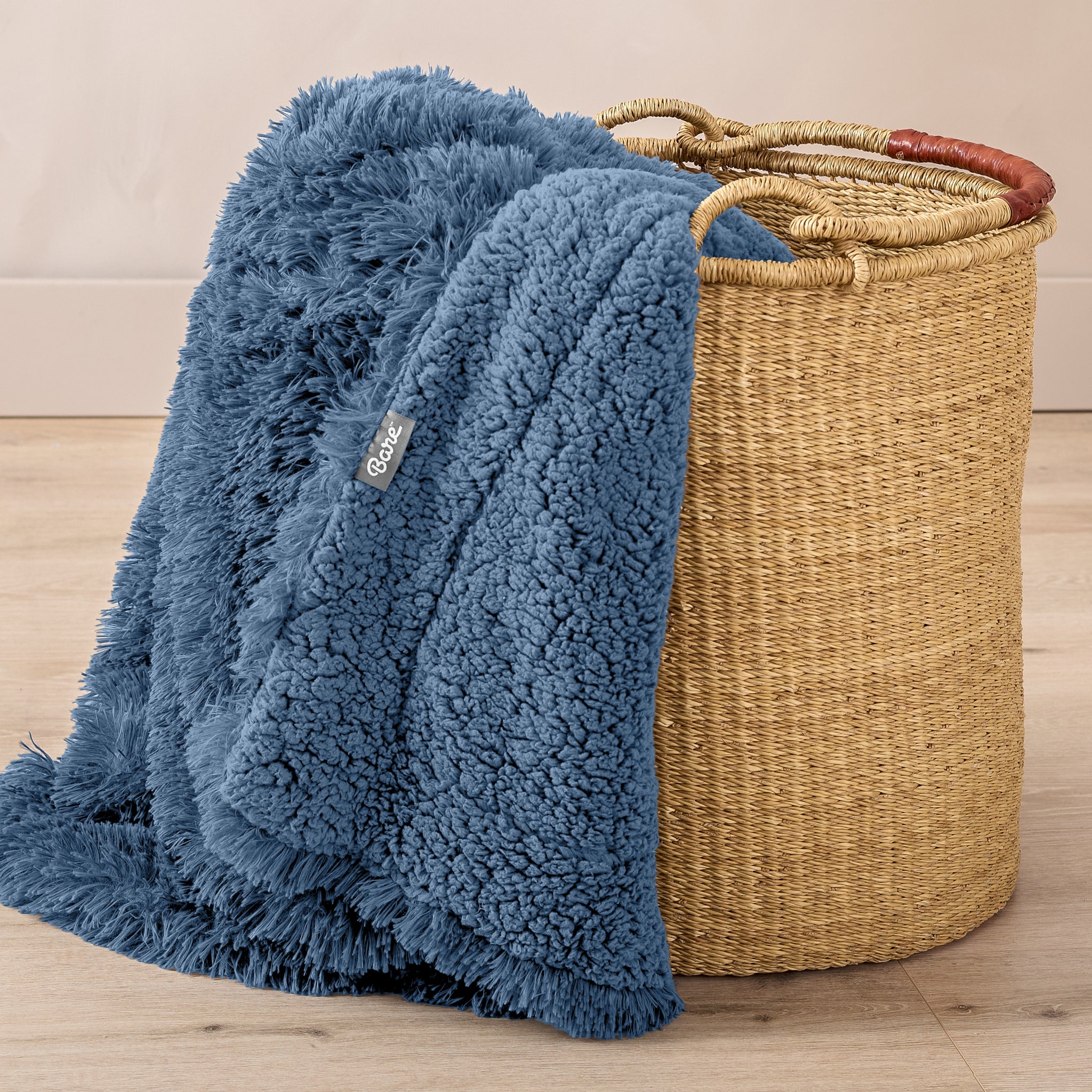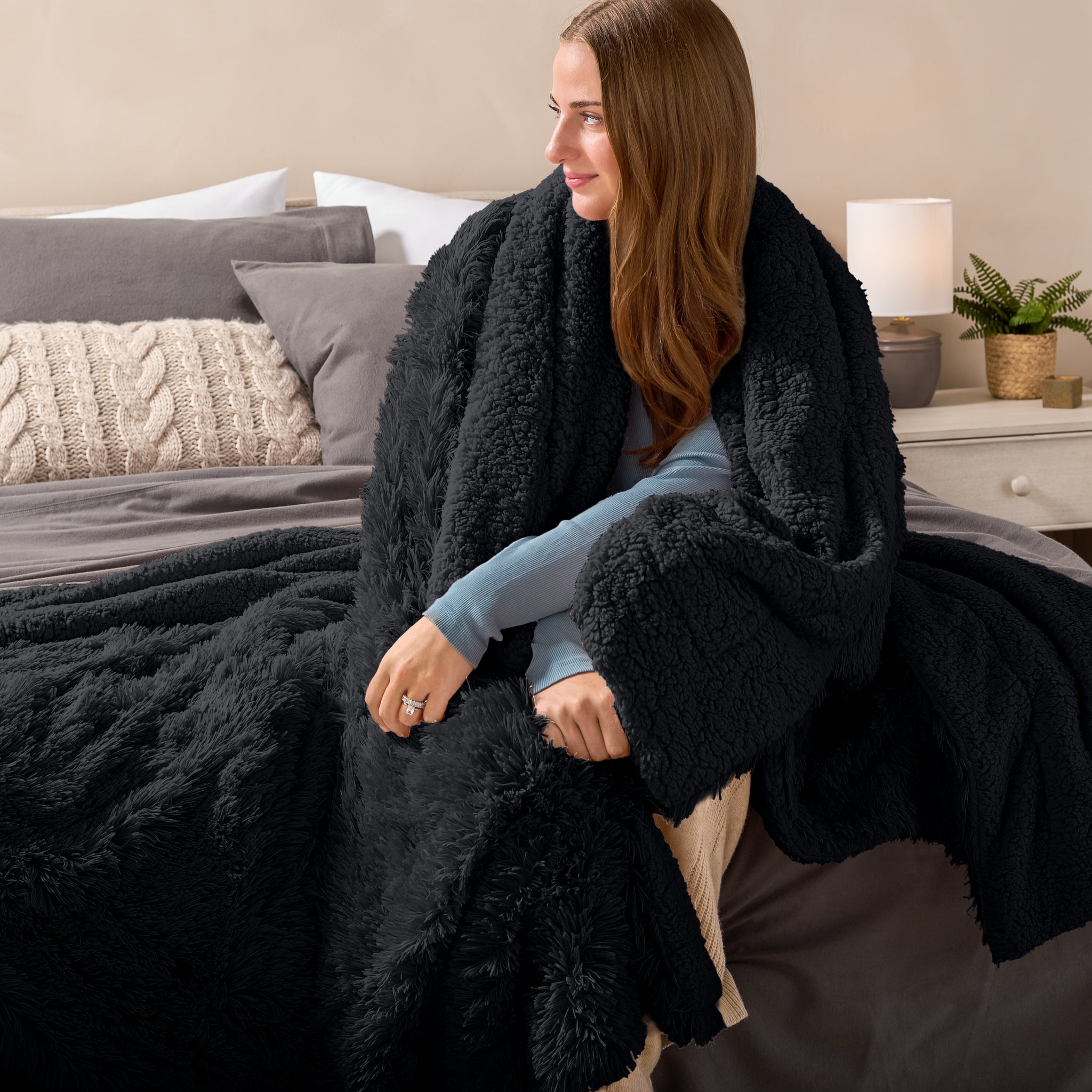 Add a layer of fun texture to your bed with our Shaggy Faux Fur Sherpa Blanket. This blanket is made from a plush, shaggy faux fur on one side and a soft sherpa on the other for an incredibly cozy and stylish feel.