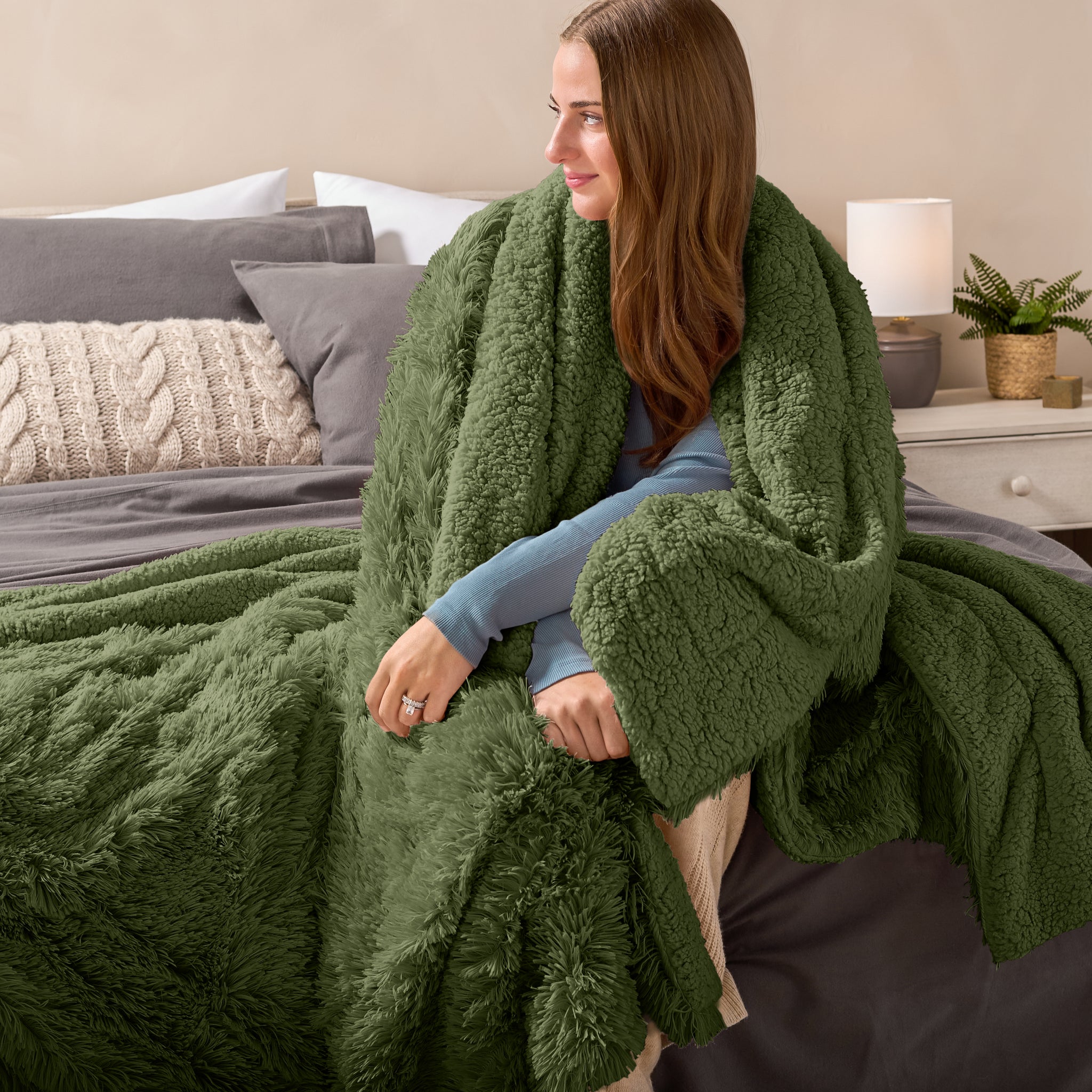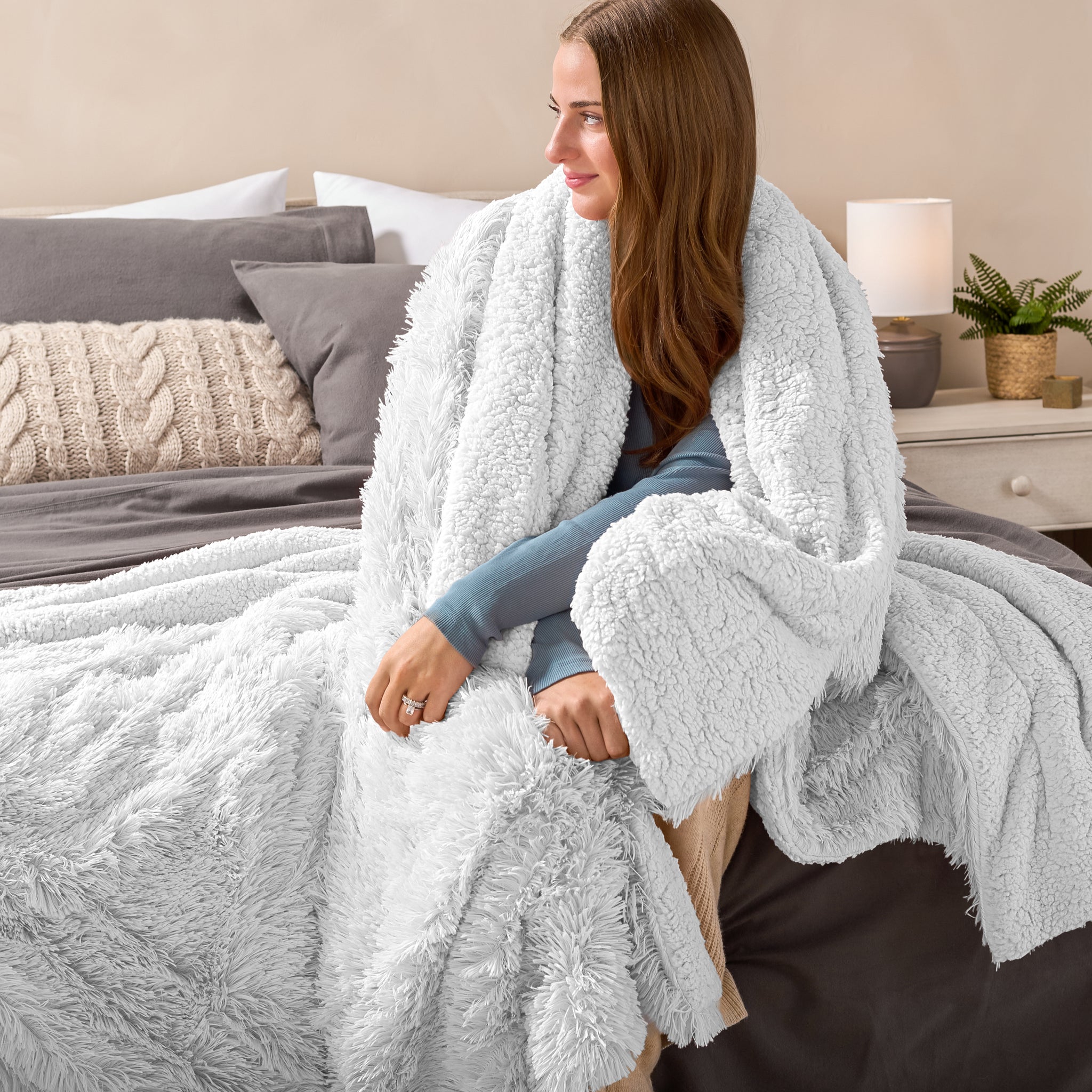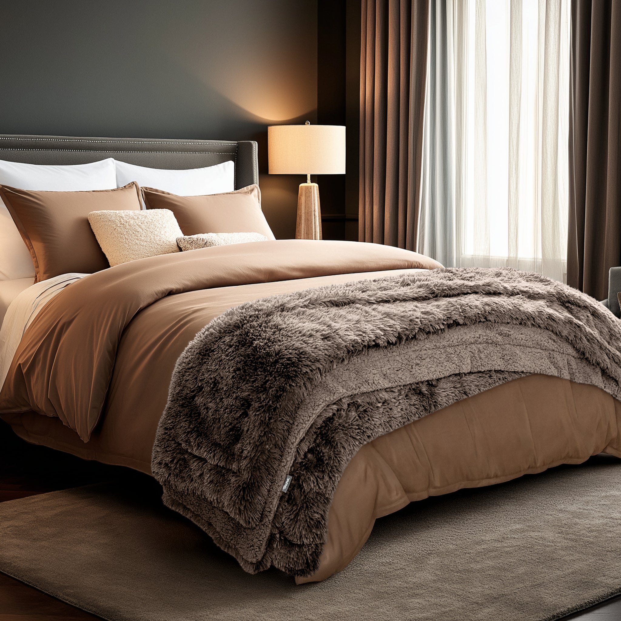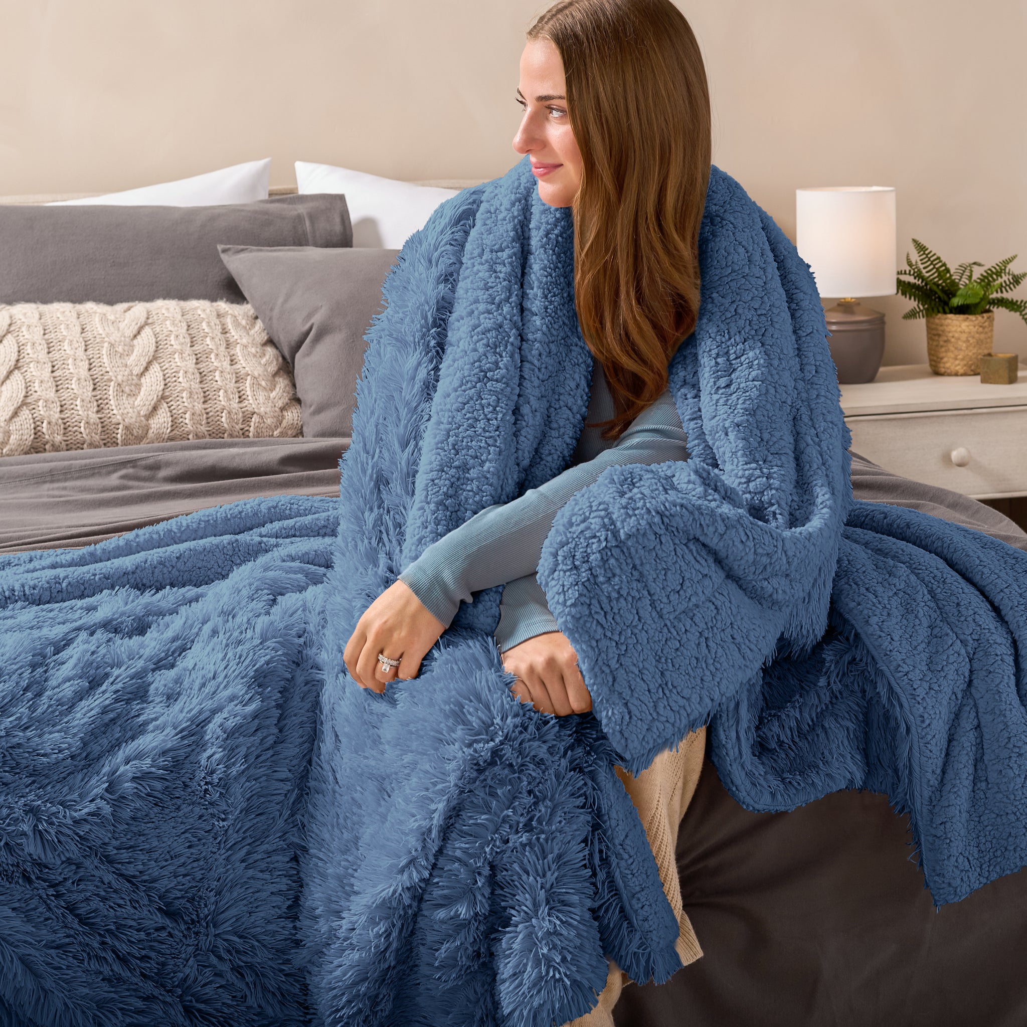Add a layer of fun texture to your bed with our Shaggy Faux Fur Sherpa Blanket. This blanket is made from a plush, shaggy faux fur on one side and a soft sherpa on the other for an incredibly cozy and stylish feel.